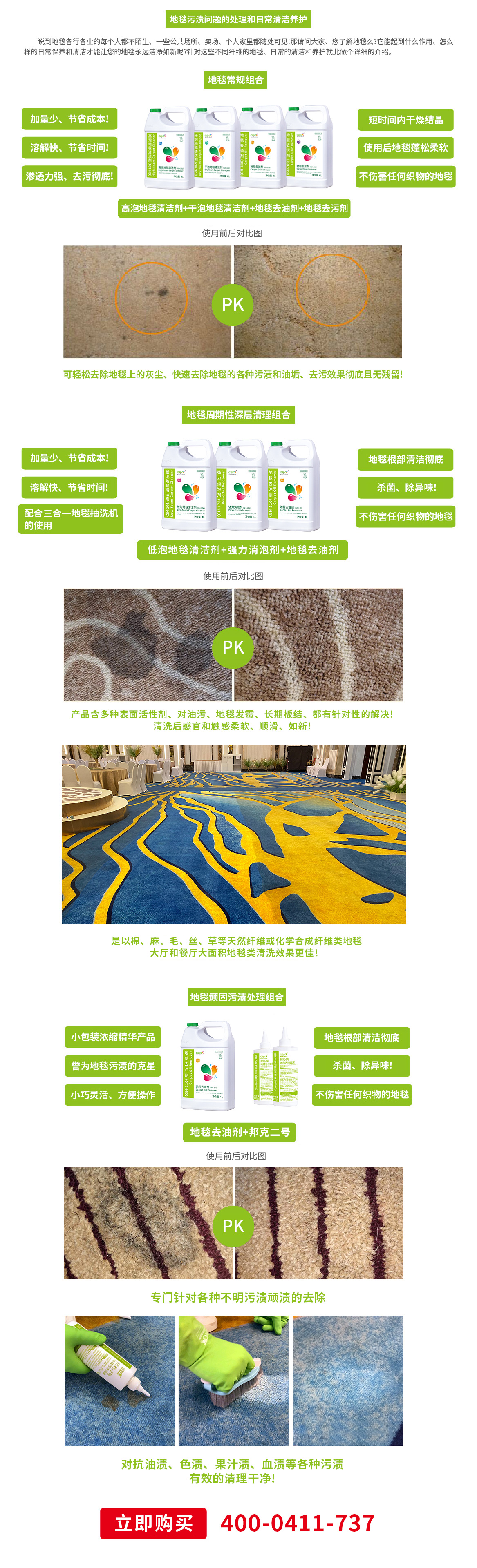 產(chǎn)品含多種表面活性劑、對(duì)油污、地毯發(fā)霉、長(zhǎng)期板結(jié)、都有針對(duì)性的解決!清洗后感官和觸感柔軟、順滑、如新!可輕松去除地毯上的灰塵、快速去除地毯的各種污漬和油垢、去污效果徹底且無(wú)殘留!
