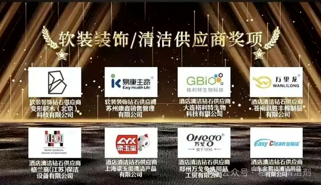 大連格利特生物科技有限公司憑借其創(chuàng)新的清潔技術(shù)、環(huán)保的清潔產(chǎn)品以及高 效的服務(wù)團(tuán)隊,經(jīng)過公眾評審?fù)镀?,榮獲“酒店清潔鉆石供應(yīng)商”。